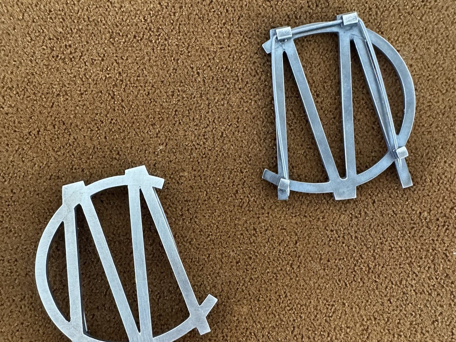 In the image above we see the detail of Reichert’s fine craftsmanship. The broach on the right is flipped over, the pin back follows the arch of the C and M, making the fastener invisible from the front. A beautiful moment that isn’t viewable to a guest in the gallery but felt important to capture and share. This attention to detail is carework in the form of collaboration. I hope this will be the first of many future projects we get to work on together and I feel so grateful to have had the support from Lynden to make this manifest.